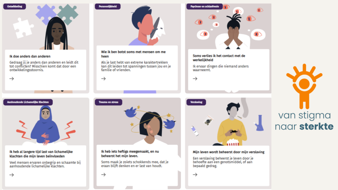 Hierbij hoort ook dat we geen ‘problemenpagina’ hebben voor iedere denkbare DSM-classificatie, maar alleen voor hoofdcategorieën. Zo voorkomen we dat de cliënt verdwaalt in de vele variaties en kan iemand zich richten op wat die zelf herkent. We motiveren ook dat de bezoeker zich niet afvraagt ‘wat is er mis met mij’ maar ‘is er hulp voor mij’?